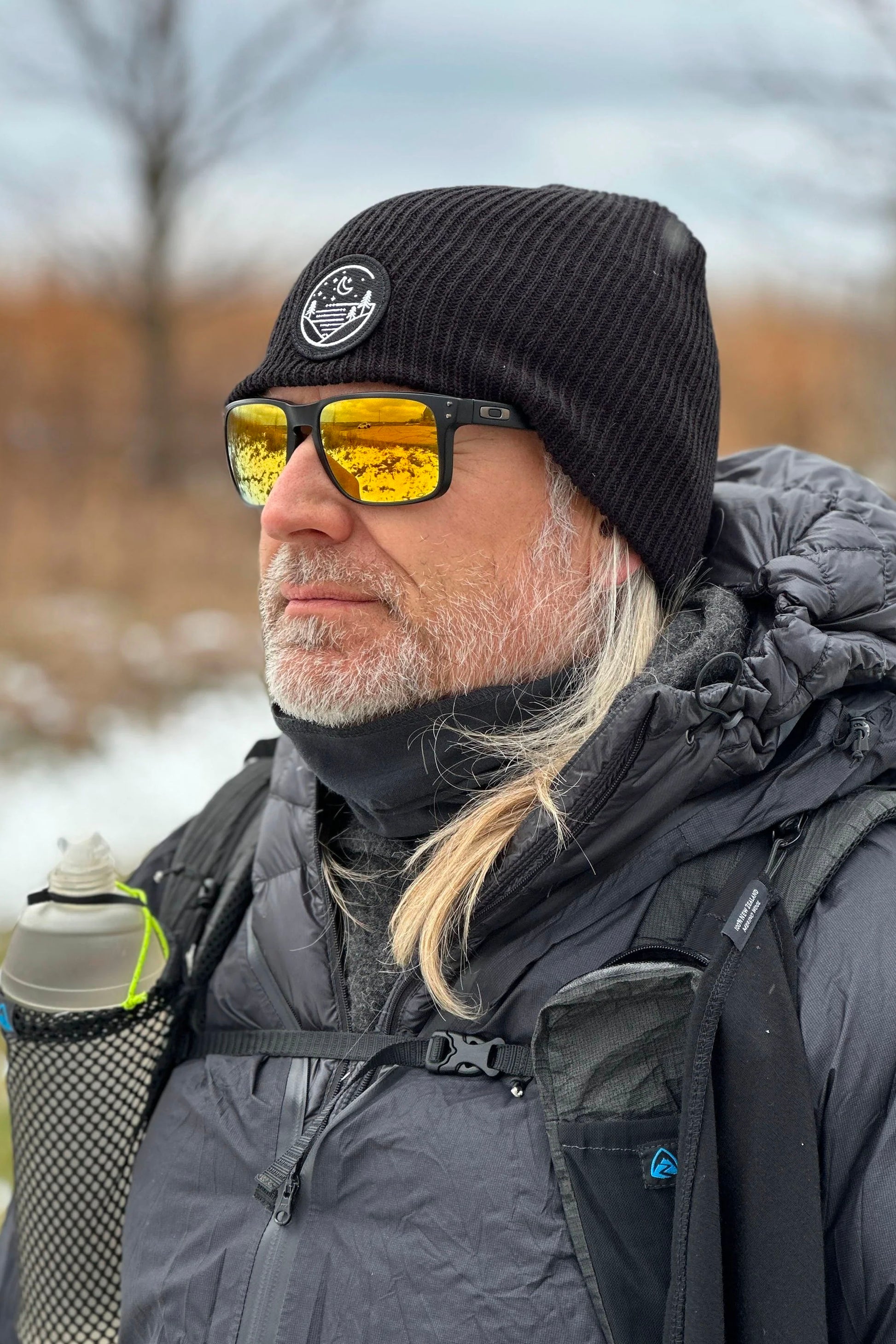 Our take on the classic knit logo beanie with a sewn on Glacial Gear patch.